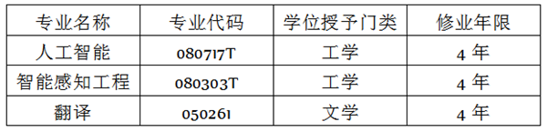 近日,教育部下发《关于公布2019年度普通高等学校本科专业备案和审批结果的通知》(教高函〔2020〕2号),我校申报的智能感知工程(审批)、人工智能、翻译等3个专业获批增设。其中智能感知工程是我校与天津大学、东南大学、哈尔滨工业大学联合申报并获批的新专业,该专业是我校首次作为发起单位成功申请设立的本科专业。