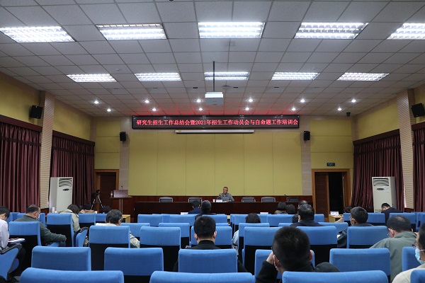 11月13日下午,学校在国际学术交流教室召开研究生招生工作总结会,全面总结2020年研究生招生工作,动员部署2021年研究生招生各项工作。校党委副书记、校长王永生,纪委书记陈清华,副校长于世洁出席会议。学校研究生招生工作领导小组成员单位负责人、相关职能部门负责人、招生学院院长与分管副院长、学科专业负责人、研究生招生工作秘书等参会,会议由研究生院常务副院长兼党委研究生工作部部长王兴芬主持。