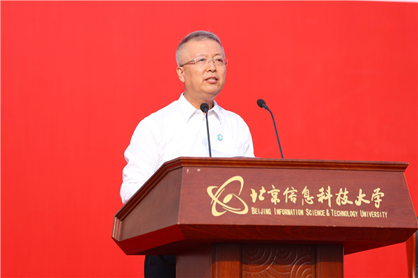 同学们来自五湖四海,有着很好的学缘背景和学术研究潜力:孙林昆等同学本科期间就在高水平杂志发表学术论文,学术研究能力初步彰显;岳婷、于文昊等同学在大学生无人驾驶方程式大赛、大学生创新创业大赛等各类竞赛场上百舸争流,屡获佳绩,展现了良好的思辨能力和独立解决问题的能力;余剑屏、吕博文等同学在专心学业之余还积极投身社会服务,曾获得2019年国庆阅兵游行方阵五星标兵等荣誉称号……你们都很优秀,但有句话说的好——凡是到达的地方,都属于昨天。挥别过往,告别昨天,从今天起,你们将在北京信息科技大学翻开崭新的一页,成为信息科大高质量发展之路上的参与者、见证者和创造者。下面,我以“直面新挑战,奋进新时代”为主题,对大家提出三点希望和大家一起共勉。