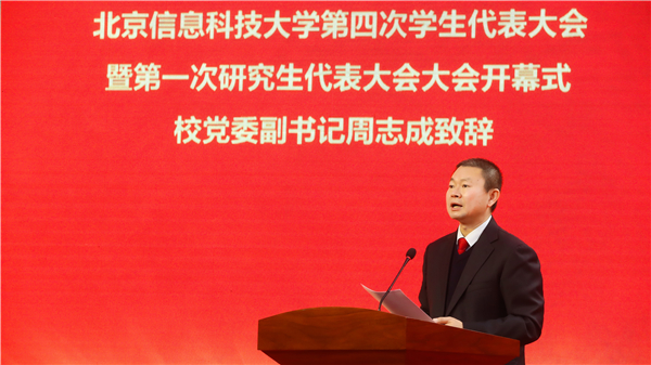 周志成在致辞中指出,此次大会是我校青年学生政治生活中的一件大事,也是广大信息科大学子参与学校治理、共商学生组织发展的一次盛会。他代表学校党委对学生会、研究生会的工作给予了充分肯定,同时向各级学生组织、学代会代表和全校青年学生提出了三点希望:一是希望各级学生组织持续深化改革,加强自身建设;二是希望学生代表切实履职尽责,反馈青年诉求、服务青年发展;三是希望全校青年学生知校、爱校、荣校,与信息科大共成长,与祖国共奋进。他希望校院两级共青团组织在学校党委的领导下切实履行好工作职能,在学校发展的新征程上发挥应有的作用;希望同学们抓住学校快速发展的机遇期,有作为、有可为,主动将个人的成长与学校的发展融合在一起,将个人的奋斗与民族的复兴融合在一起,将个人的命运和国家的命运融合在一起。