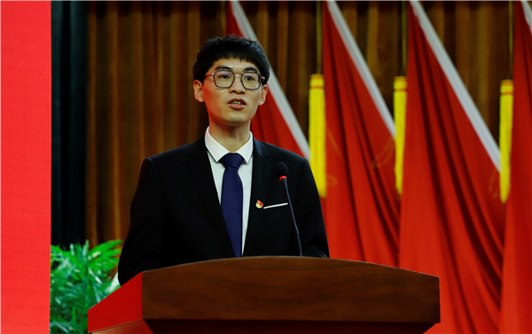 校研究生会执行主席张立鑫代表北京信息科技大学第二十六任研究生会作了题为《恪守不变初心,勇担时代使命 ,引领广大研究生在建设信息特色鲜明的高水平大学中贡献青春力量》的工作报告。