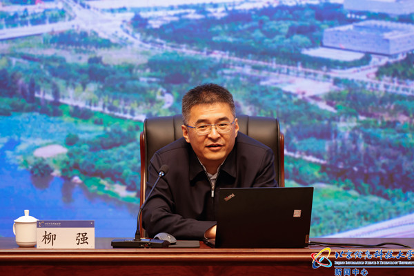 在报告会上,柳强立足自身、放眼全球,展望了昌平区的未来发展图景与建设路径。首先,他以昌平的人文地理和自然地理概况为切入点,详细介绍了昌平的区位优势、产业发展和营商环境,指出昌平区当前正在加快“四区”建设,具有得天独厚的文化、生态、交通等资源,科教实力强大雄厚、政策条件优渥健全、发展空间优质充足,是一片充满希望、大有可为的热土。其次,他围绕昌平未来科学城“两区一心”空间格局和“两谷一园”创新布局,深入细致地讲解了沙河高教园区的建设进展、校城融合、高校成果转化等内容,介绍了高教园区建设取得的显著成效以及实施的创新举措。柳强强调,未来要对标建设世界一流高教园区,不断提升校城融合的广度和深度,加快建设结构合理、要素齐全、职住平衡、充满活力的科教及产业融合新城。他希望信息科大充分发挥自身优势,有效利用各方资源,为昌平区的建设与发展持续输送人才支撑与智慧支持。