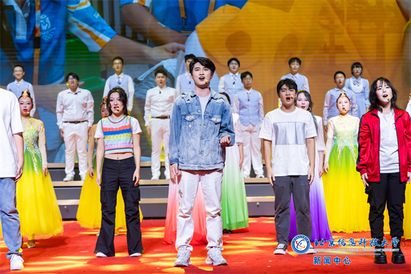 在全场齐唱《歌唱祖国》的歌声中,信息科大全体师生深情告白祖国。