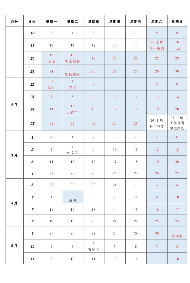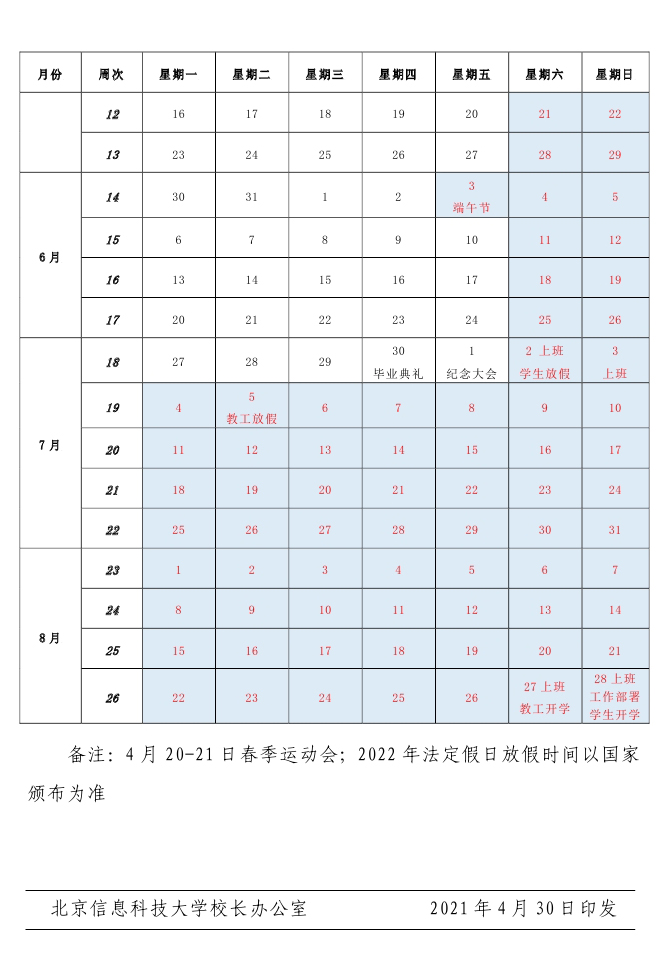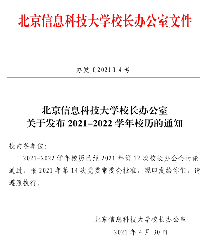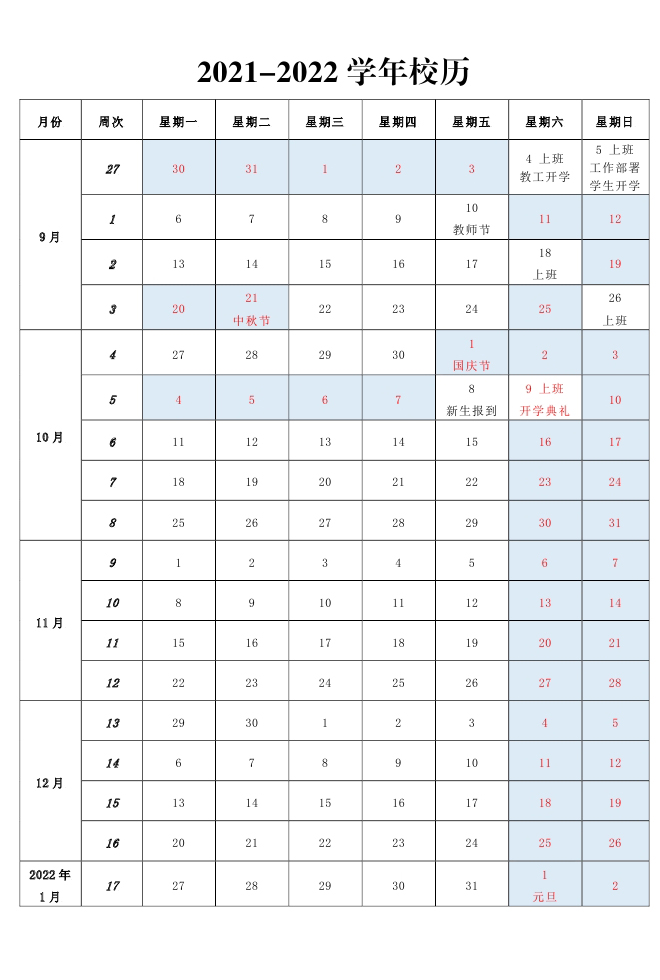 2021-2022学年校历