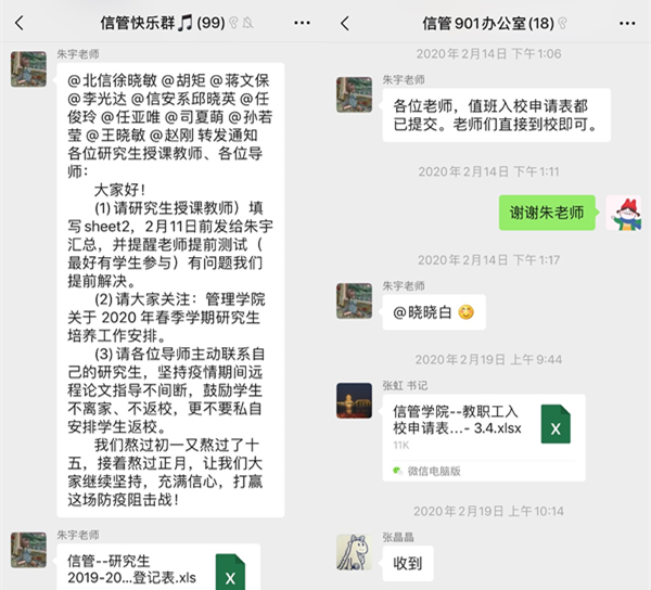 学院办公室主任朱宇老师在疫情发生时身在京外的老家,无法立即赶回北京,只能在家办公的他勇挑重担。他及时与学院各位老师取得联系,了解老师们的健康情况与行程,完成了庞杂的数据收集、汇总和上报工作,并及时传达学校下发的通知文件和注意事项,并主动帮助学院不具备办公条件的老师填写相关表格,付出了大量的精力,得到老师们的一致肯定。