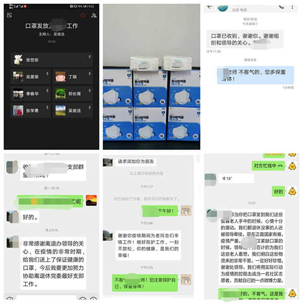 为确保口罩能及时发放到位,3月2日、3月3日离退休工作处接连召开两次电话会议,紧急布置前期精确摸排的部分空巢、独居老同志的口罩发放工作。目前,各校区离退休工作人员正在通过送“货”上门、快递等方式开展口罩的发放工作,争取以最短的时间、最快的途径把学校党委的关怀送到空巢、独居老同志的身边。