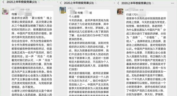 党课结束之后,同学们在微信群中发表了自己的课后感,表示收获良多、感动不已,今后要更好的提升自己的政治素养,接过革命先驱的接力棒,肩负时代重任,发挥党员模范带头作用,把党的精神薪火相传,为共产主义事业奋斗终身!本次党课是公管传媒学院学生党支部和离退休党支部“薪火相传”活动的开始,以后“薪火相传”相关工作还会以其他形式继续开展。