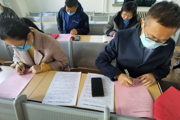 警示教育结束后,领导班子成员签署了落实全面从严治党工作责任书;党支部书记签署了落实全面从严治党责任书、“五项责任”承诺书;全体教师签署了师德承诺书,承诺认真履职尽责,强化使命担当。随后,学院开展了师德师风建设学习答题活动,进一步加深教师对师德师风建设的认识和重视。