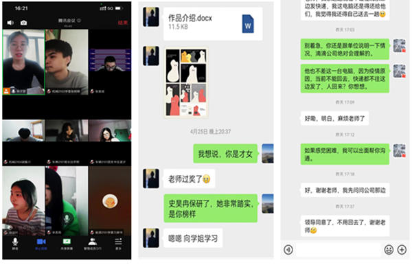 为及时掌握学生思想动态,了解学生所需,及时帮助学生更好更快地调整与适应当下的学习与生活状态,机电学院围绕学生心理健康、毕业生就业等问题通过“一对一”线上谈心谈话、主题班会等方式,为学生送去“云关怀”,实现在线云陪伴,传递云关怀。对全体毕业生提供“一对一”就业咨询服务,确保疫情期间就业指导不缺位,就业服务不断线,为毕业生高质量就业“架桥铺路”。