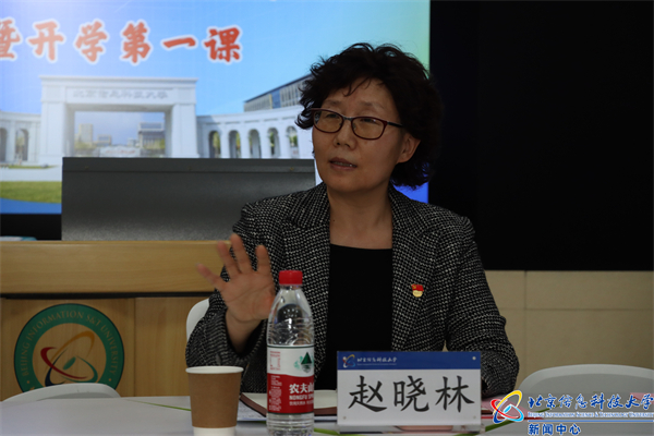 赵晓林认真倾听同学们的发言,不时与同学们互动交流,一一回应同学们提出的问题。她表示,学院班子成员和同学们在和煦的春日、在美丽的校园相约,黾勉同心,共话成长,这是一堂特殊的“开学第一课”。赵晓林对学习贯彻党的二十大精神提出了要求,介绍了现代职业教育形势,勉励同学们要把握职普融通新机遇,洞察教育发展新态势,在变化中发展,在发展中提高;要有“板凳要坐十年冷,咬定青山不放松”的精神,养成良好的“定力”和“自控力”,培养自己独立思考的能力和解决问题的办法;要珍惜大学时光,不忘实践躬行,积极投身于实现中华民族伟大复兴的洪流之中。
