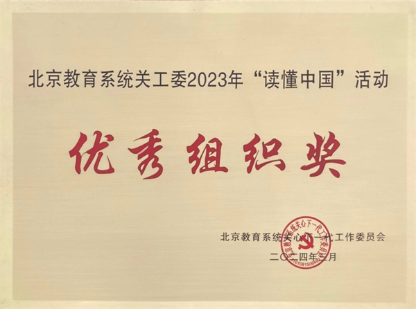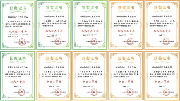 在北京教育系统关工委按照教育部关工委统一部署,以“老少共话二十大,踔厉奋发新征程”为主题开展的“读懂中国”活动中,学校关工委从各学院关工委和校团委提交作品中择优推荐的作品获评北京教育系统关工委2023年“读懂中国”活动微视频二等奖3项、三等奖2项和征文二等奖1项、三等奖4项,学校关工委获评优秀组织奖。